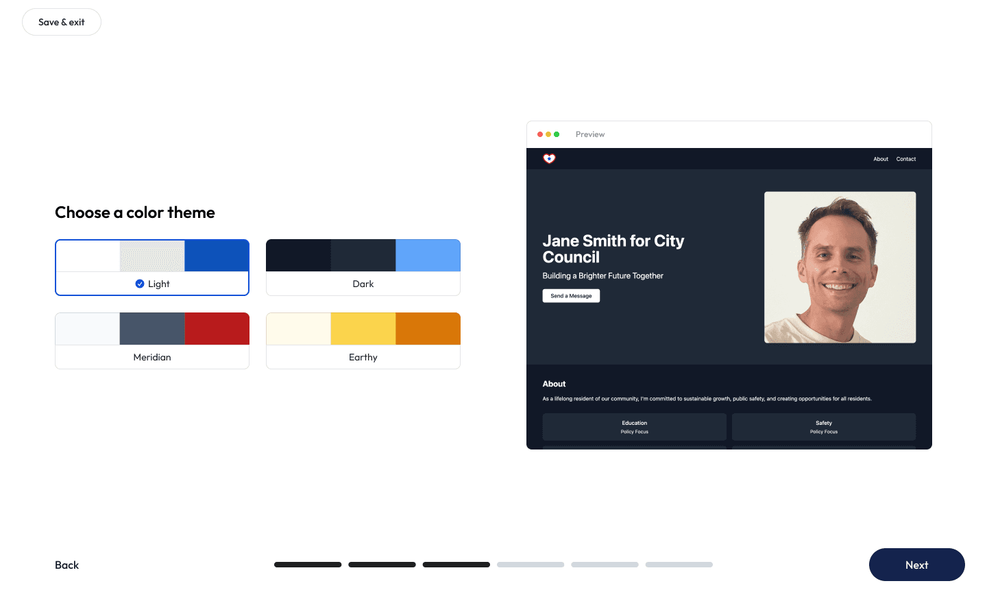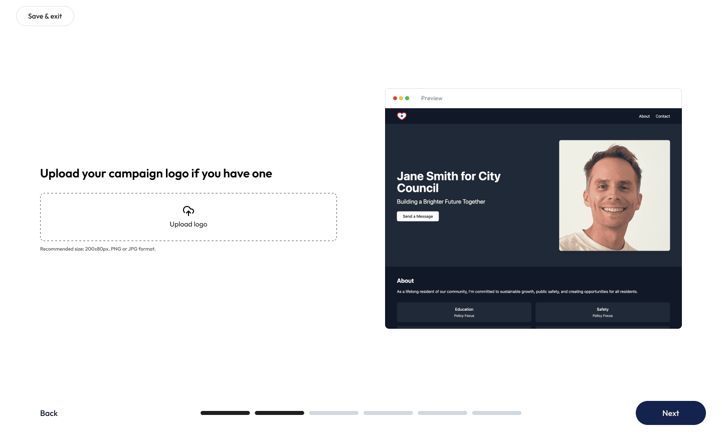 Ready to start building? GoodParty.org empowers Independent and nonpartisan candidates with the tools they need to run, win, and serve — including a campaign website builder and templates for drafting campaign content. Check out this live demo of the campaign website builder to see it in action.