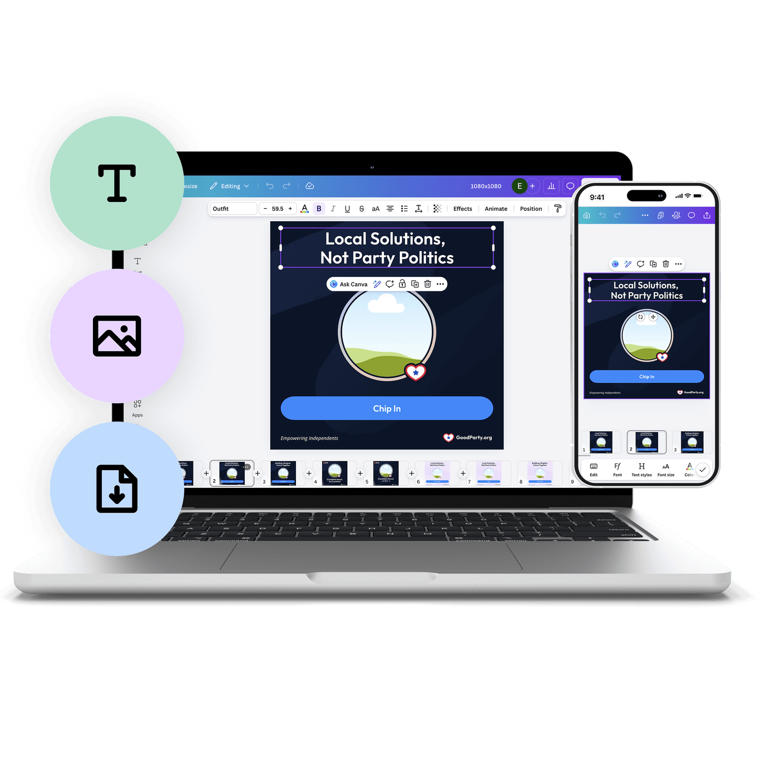 You don’t need a political machine — or a designer — to show up strong online. They’re plug-and-play and look great on social, email, and print. Our templates cover every campaign moment: